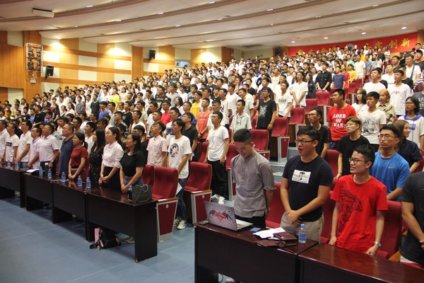 首先,全体起立,奏唱校歌,在信息科学与技术学院2018级新生嘹亮的歌声中,信息科学与技术学院2018年院长新生对话会拉开序幕。