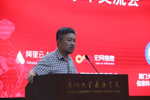 厦门市自动化学会理事长、厦门大学嘉庚学院副院长刘暾东教授为本次活动致欢迎辞。。刘暾东副院长说:“厦门大学嘉庚学院和宏网公司联合成立了一个关于物联网的技术合作中心,这个校企合作科研平台是学校第八个校级的校企合作科研平台。云计算从概念的产生,技术的研发,到实际项目的落地经历了将近十年的时间。云分为三个层次:基础架构、平台和软件。学校今年申请了两个关于人工智能方面的的专业,一个是智能科学与技术,还有一个是机器人工程。我相信这样的讲座也会推动我们学校信息科学与技术学院在云计算、大数据、人工智能等相关领域的研究,形成一个良好的学术氛围。我代表学校预祝15周年校庆的学术活动取得圆满成功。”