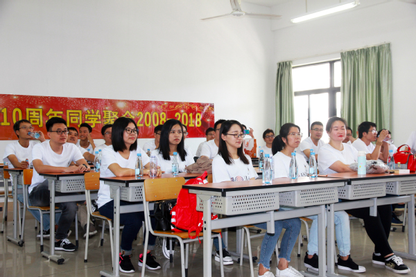 “同学们,我们现在开始点名。温涌,黄丽娟,黄鹏坚……”随着班长林培闽开始逐一念出同学们的名字,2004级电子信息工程专业十周年同学聚会的一项重要内容——主题班会在理工楼411A教室拉开了序幕。电子信息工程专业的43名校友正襟危坐,聚精会神地听着台上班长的呼唤,一声声风格各异的“到”,教室气氛一下子活跃起来,仿佛回到了十年前的那段时光,似乎看到了十年前一个个青涩的身影。十年,改变的是容颜,是阅历,是地域的距离,此刻,不变的是笑容,是心境,是每个人对母校、对同学的深情。