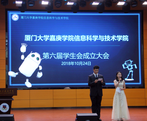 本次成立大会在嘉宾及全体人员入座后正式开始。成立大会首先展示了学生会各部门、往届主席团及其他院系主席团对信息科学与技术学院第六届学生会美好祝福的短视频。