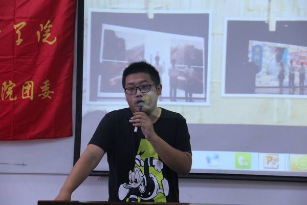 然后,实践部部长初群易说到,部长们对每一位部员都有期望,同时也非常愿意把他们所知道的都传授给部员们,希望部员们能够抓住这个机会多学习。就像团总支书记黄斯演在纳新宣讲大会时所说“大学四年,长路漫漫,请把优秀当成一种习惯。”我们绝不该懈怠自己,而是要以高标准来衡量自己,我们的才能终将会在某一天得到发挥。接下来各位部长都相继上台发言,他们都提到的很重要的一点是他们都非常乐意帮助新成员,希望大家能在团总支学到更多的知识。每个来到团总支的同学都怀着一颗学习的心,大家一定能共同谱写团总支美好的未来。