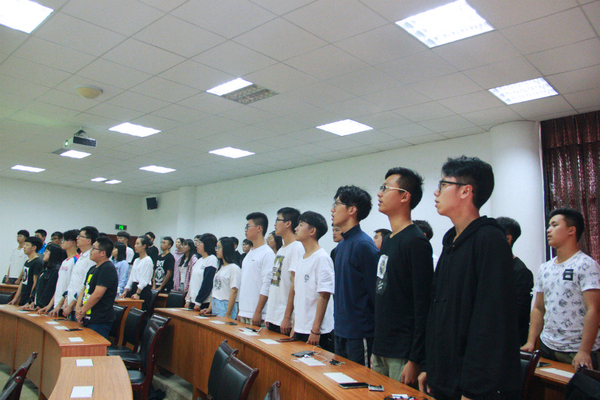 首先,全体起立合唱了校歌。接着,指导老师史扬上台发言,史扬老师首先表达了对大家的欢迎,他表示:团总支是一个温馨的组织,希望在场的各位能够在团总支里得到更好的锻炼机会从而提升自己,让自己的能力变强。并且要紧握这个平台给自己带来的历练的机会,不论是写策划还是办活动,都能让自己学到不一样的知识,丰富自己。最后他对在场的各位同学提出了一个要求,即要用高标准来要求自己,因为严格律己是成功的必要条件。