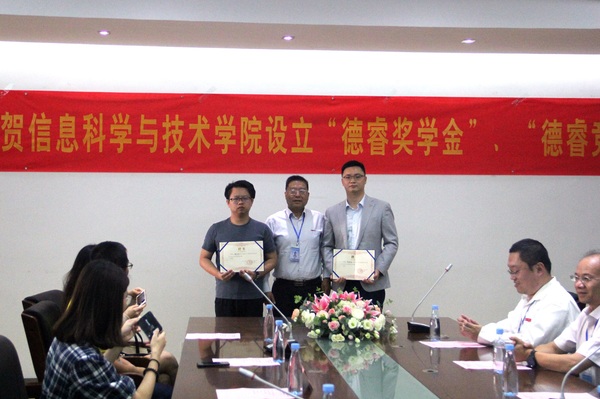 随后,夏靖波院长与汤俊生校友正式签署了“德睿奖学金”和“德睿竞赛金”的设立文件。本次汤俊生校友在信息科学与技术学院设立“德睿奖学金”和“德睿竞赛金”,用于表彰在学生工作和学术竞赛等方面表现突出的学生,并以评优表彰为契机,树立优秀榜样,感染教育全体学生,促进信息科学与技术学院学风建设。